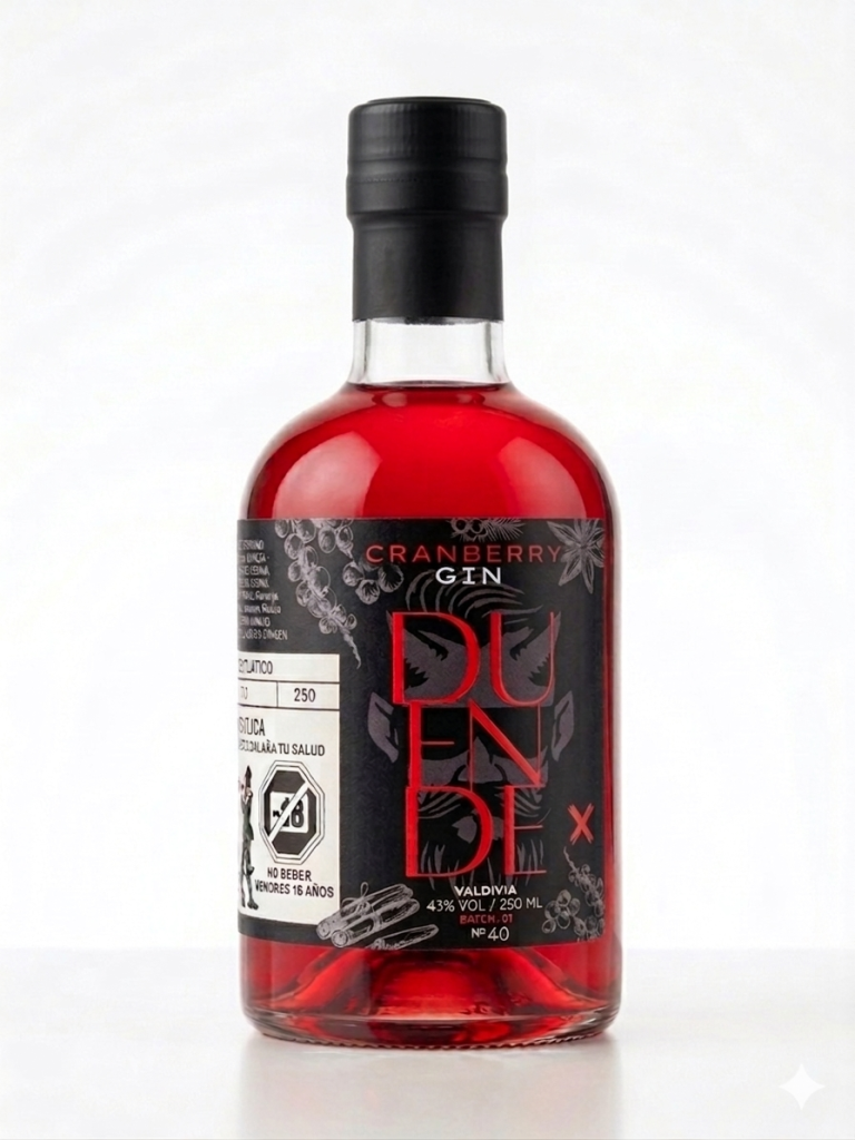 Gin duende cranberry , la edición más frutal de duende , nuestro gin es macerado en cranberry de la zona sur de Chile, más dulce , más intenso.